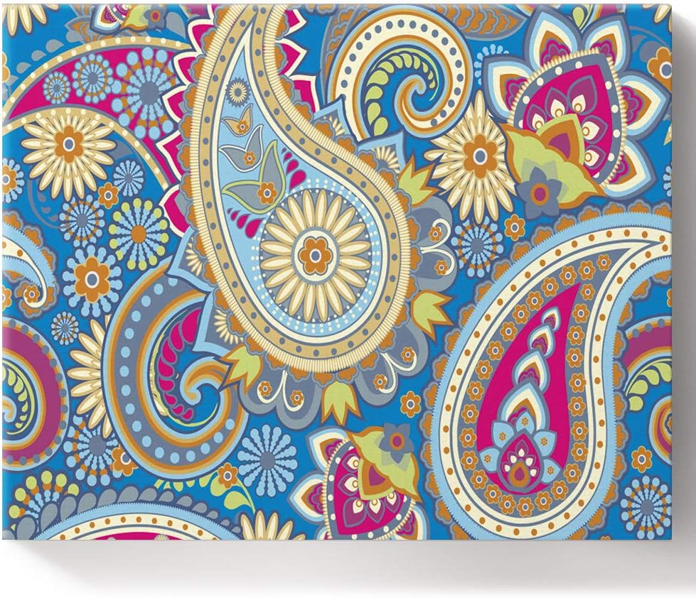 Amazon Com Paint By Numbers For Adults Framed Boho Paisley Floral India Bohemia Design Artwork Diy Oil Painting Kit On Canvas 16x20 Inch
